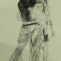 One of a series of life drawing sketches. Made with charcoal.